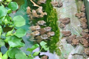 - จากนั้นก็นำลูกพันธุ์กบมาเลี้ยงตามปกติ โดย 1 บ่อนั้นจะใส่ลูกกบลงไป 1,000 ตัว